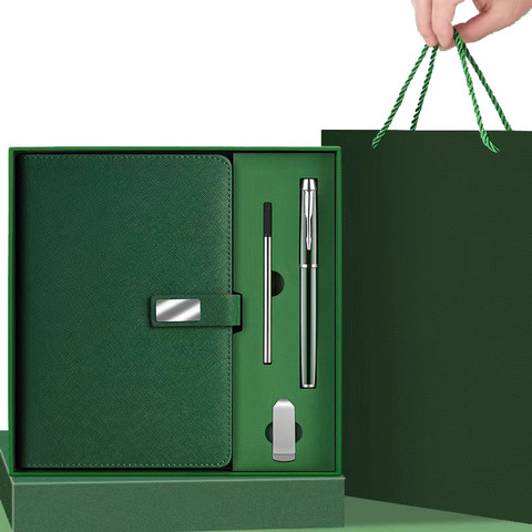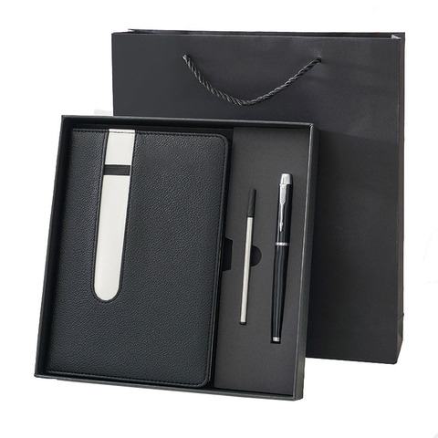 Juego de regalos corporativos con logotipo personalizado, cuaderno ejecutivo de cuero, bolígrafo, paquete USB, regalos Premium para clientes comerciales, juego de oficina promocional